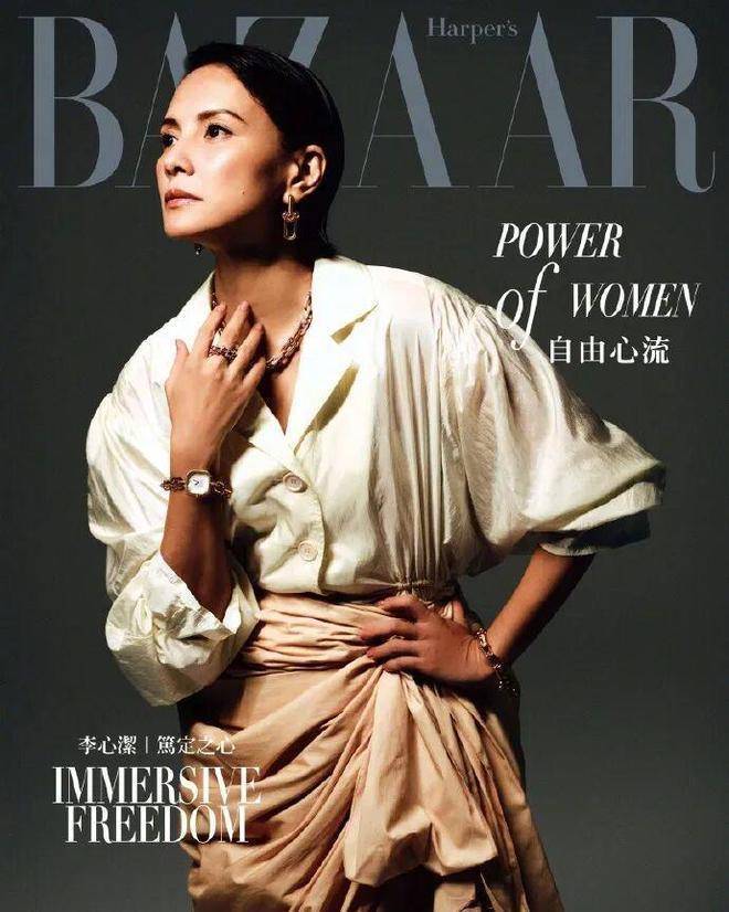 更绝的是她把珠宝戴出了“反套路”。别人戴Tiffany HardWear系列总想着怎么炫富,她偏不——粗链条项链配基础款衬衫,手镯叠戴在做家务会戴的手表旁边,连耳坠都选了最小巧的款式。采访里她说“珠宝是武器也是铠甲”,这话真没吹牛。当她穿着水蓝色衬衫靠在墙边,细碎的钻石光芒从耳际滑落时,你会发现那些blingbling的首饰根本不是主角,真正发光的是她眼底那股“经历过风浪,所以更懂自由”的通透。这种“珠宝为我服务”的气场,可比硬凹“名媛范”高级多了。 有人说这组封面是“中年女性的时尚范本”,我觉得不止。看看她最近的动态:一边在《乘风2026》排练室练舞到汗流浃背,一边在镜头前从容切换各种风格。从金像奖影后到舞台唱跳选手,从文艺片女神到时尚圈新宠,她好像永远在打破别人给的标签。就像封面里那件白色露肩衬衫,荷叶边设计本该是柔美的象征,她却穿出了“温柔但有力量”的感觉。46岁又怎样?年龄从来不是限制,敢不敢撕掉标签、活成自己,才是一个女人最该有的“状态”。现在终于明白她凭啥登封面了——这种不被定义的生命力,比任何少女感都更让人着迷。